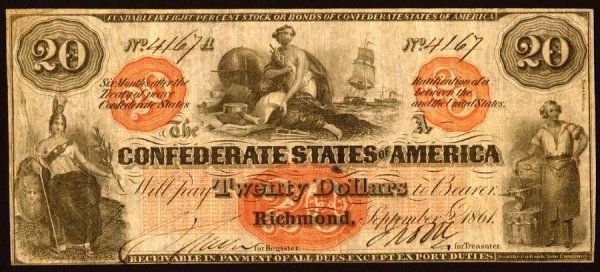 1861 Confederate States of America $20 Note. Richmond, September 2, 1861Feb 26, 2026Sept. 2, 1861 Confederate States Of America $20 NoteFeb 27, 2026Sept. 2, 1861 Confederate States Of America $20 NoteFeb 27, 2026Sept. 2, 1861 Confederate States Of America $10 NoteFeb 27, 2026July 25th, 1861 Confederate States Of America $20 NoteFeb 27, 2026July 25th, 1861 Confederate States Of America $20 NoteFeb 27, 2026VG10 1861 $10 Confederate States of America T-22 CSA PMGFeb 28, 20261861 $20 Confederate States T-18 PMG VF25 Certified Note5 days LeftSept. 2, 1861 Confederate States Of America $20 NoteFeb 27, 2026Uncertified 1864 $500 Confederate States of America Note T-64 EFMar 03, 2026July 25th, 1861 Confederate States Of America $10 NoteFeb 27, 2026MS61 1862 T-42 $2 Confederate CSA PCGS Currency4 days Left1863 T-62 $1 Confederate Currency PCGS MS62 Certified NoteFeb 27, 2026(187A) 1929 $20 FIRST NATIONAL BANKNOTE CURRENCY STROMSBURG NEBRASKAFeb 24, 2026Confederate States of America, Two Dollars T70.Mar 11, 2026(636) 1861 $20 CONFEDERATE STATES OF AMERICA NOTE T-18 NO FLOURISHES PCGS 62 UNCFeb 26, 2026