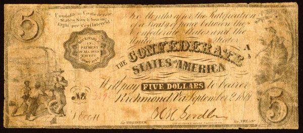 1861 Confederate States of America $20 Note. Richmond, September 2, 18612 days LeftSept. 2, 1861 Confederate States Of America $10 Note3 days LeftJuly 25th, 1861 Confederate States Of America $10 Note3 days LeftSept. 2, 1861 Confederate States Of America $20 Note3 days Left1861 $5 Confederate States T-36 PMG VF25 Certified Note2 days LeftFeb. 17th, 1864 Confederate States Of America $500 Note3 days LeftJuly 25th, 1861 Confederate States Of America $10 Note3 days LeftJuly 25th, 1861 Confederate States Of America $20 Note3 days LeftSept. 2, 1861 Confederate States Of America $20 Note3 days Left1864 $500 Confederate States Note T-64 Uncertified4 days Left1861 $5 Confederate States Note PMG VF25 Circulated T-37Mar 03, 20261864 $500 Confederate T-64 Note PMG AU58 Certified1 day LeftJuly 25th, 1861 Confederate States Of America $20 Note3 days LeftJuly 25th, 1861 Confederate States Of America $10 Note3 days Left1864 $5 Confederate States T-69 PMG GEM 65 EPQ Note2 days LeftJuly 25th, 1861 Confederate States Of America $10 Note3 days Left