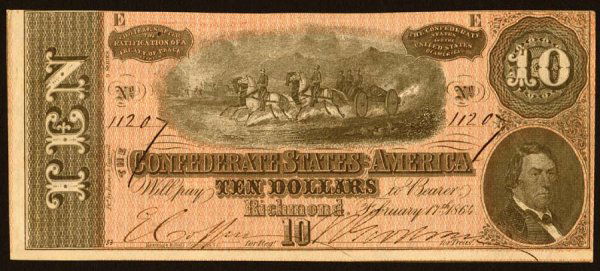 1861 Confederate States of America $20 Note. Richmond, September 2, 1861Feb 26, 2026Confederate States of America $10 Note – Richmond, Feb. 17, 1864 – Civil War CurrencyFebruary 17th, 1864 Confederate States Of America $10 NoteFeb 27, 2026February 17th, 1864 Confederate States Of America $10 NoteFeb 27, 2026April 6th, 1863 Confederate States Of America $10 NoteFeb 27, 2026Feb. 17th, 1864 Confederate States Of America $500 NoteFeb 27, 2026Confederate States, 100 Dollar T65 Banknote.Mar 11, 20261862-63 $100 Confederate Note PMG AU55 Certified5 days LeftFeb. 17th, 1864 Confederate States Of America $100 NoteFeb 27, 2026December 2nd, 1862 Confederate States Of America $10 NoteFeb 27, 2026July 25th, 1861 Confederate States Of America $10 NoteFeb 27, 20261861 $10 Confederate States PMG VF25 Certified Currency5 days LeftSept. 2, 1861 Confederate States Of America $10 NoteFeb 27, 20261864 $10 T-68 Confederate PMG 63EPQFeb 26, 20261864 $10 T-68 Confederate PMG 64EPQFeb 24, 2026July 25th, 1861 Confederate States Of America $10 NoteFeb 27, 2026