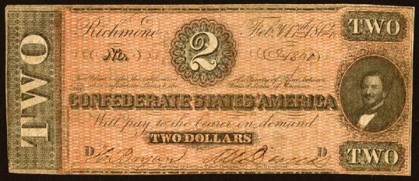 1861 Confederate States of America $20 Note. Richmond, September 2, 1861Feb 26, 2026Confederate States of America, Two Dollars T70.Mar 11, 2026Confederate States of America. Group of Two [2] Twenty Dollars Banknotes.Mar 11, 20261864 $2 Confederate States PMG MS63 Certified Currency3 days LeftUnited States Fractional Currency – Series of 1874 – 25 Cents – Civil War Era PapeFeb. 17th, 1864 Confederate States Of America $500 NoteFeb 27, 2026United States $2 Legal Tender Note 1953 Series A68803268A6 days LeftConfederate States of America. Group of Two [2] Twenty Dollars.Mar 11, 2026Sept. 2, 1861 Confederate States Of America $20 NoteFeb 27, 2026February 17th, 1864 Confederate States Of America $10 NoteFeb 27, 2026MS61 1862 T-42 $2 Confederate CSA PCGS Currency5 days LeftJuly 25th, 1861 Confederate States Of America $20 NoteFeb 27, 2026VF25 1861 $20 Confederate States of America T-18 CSA PMG7 days LeftSept. 2, 1861 Confederate States Of America $20 NoteFeb 27, 2026Feb. 17th, 1864 Confederate States Of America $100 NoteFeb 27, 2026CU63 1862 $2 Confederate States of America T-54 CSA PMGFeb 27, 2026