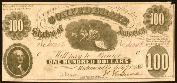 1861 Confederate States of America $20 Note. Richmond, September 2, 1861Feb 26, 2026(746) 1861 $10 CONFEDERATE STATES OF AMERICA NOTE T-28 PF-8 CR-235A PCGS 25 VF5 days LeftJuly 25th, 1861 Confederate States Of America $10 NoteFeb 27, 2026CH63 1862-63 $100 Confederate States of America T-40 PMGFeb 27, 2026July 25th, 1861 Confederate States Of America $10 NoteFeb 27, 2026MS61 1862 T-42 $2 Confederate CSA PCGS Currency4 days LeftJuly 25th, 1861 Confederate States Of America $20 NoteFeb 27, 2026July 25th, 1861 Confederate States Of America $10 NoteFeb 27, 2026VG10 1861 $10 Confederate States of America T-22 CSA PMGFeb 28, 2026VF25 1861 $20 Confederate States of America T-18 CSA PMG6 days LeftUncertified 1864 $500 Confederate States of America Note T-64 EFMar 03, 2026July 25th, 1861 Confederate States Of America $10 NoteFeb 27, 2026July 25th, 1861 Confederate States Of America $20 NoteFeb 27, 2026Sept. 2, 1861 Confederate States Of America $10 NoteFeb 27, 2026Choice 1861 $5 Confederate States of America T-36 CSA PMG AU58 EPQFeb 26, 2026Green 1861 $10 Confederate States of America T-24 PMG VF25 GCC4 days Left