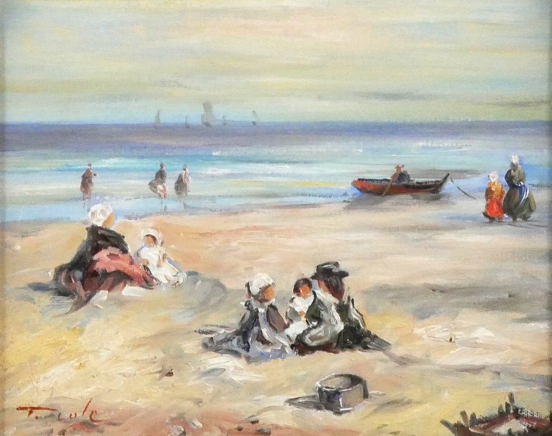 T. COLE Beach Scene Painting