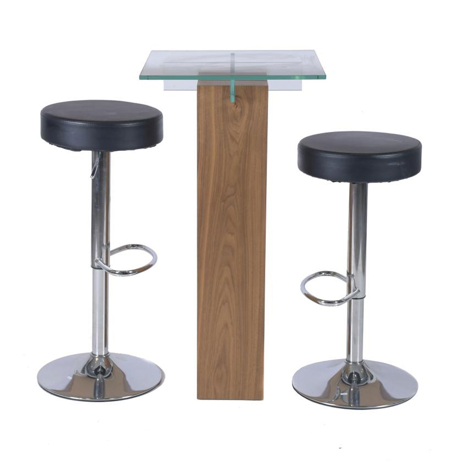 TABLE AND PAIR OF BAR STOOLS.