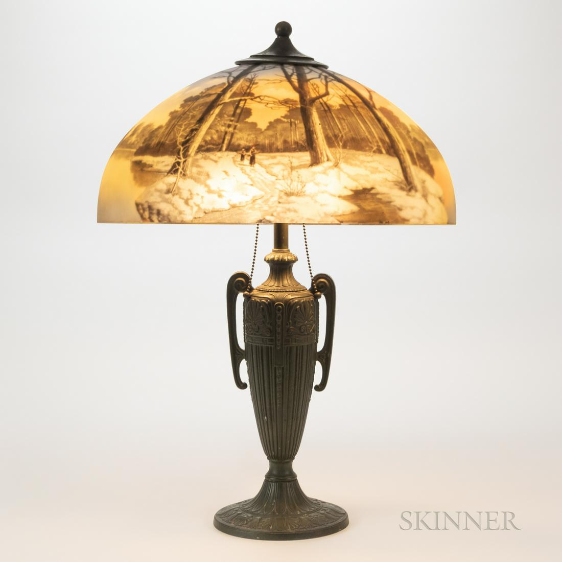TABLE LAMP WITH REVERSE-PAINTED GLASS SHADE Early 20th Century Height 22.5". Shade diameter approx.Eldred's4.8(484)$200(2 bids)Mar 04, 2026