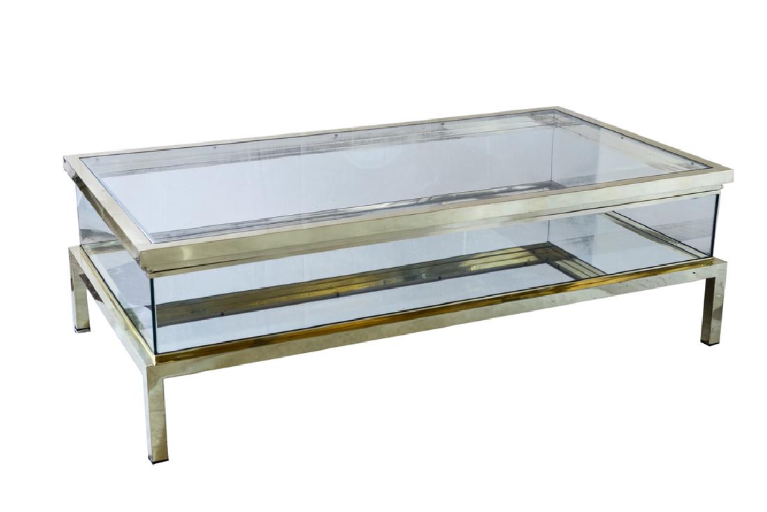 RON SEFF (1934-1990) Coffee Table1980sbrass, stainless steel, glass, unmarkedheight 17 1/2in; wi...P.E. GUERIN INC. (FOUNDED 1857) Side Tablecirca 1982steel, burnished brass, unmarked height 21 1...Maison Jansen Style, Steel, Brass, Glass, Console Table, France, 1970sModern Brass Lucite Glass Coffee Table 54 x 26 x 16.25Mar 20, 2026WILLY RIZZO (1928-2013) 'Flaminia' Coffee Table1970schrome, brass, smoked glass, signed 'Willy R...Coffee Table in Crystal with Briar and Brass, 1970sTommaso Barbi Coffee Table Brass White Metal Glass TopMar 25, 2026de Sede DS-9075/62 Bauhaus Rectangular Chrome Base Satin Glass Top Coffee TableMar 15, 2026Woodbridge Vintage Style Silver Leaf Metal Cocktail Table 19H x 42W x 42DMar 13, 2026Vintage Solid Brass and Glass Console or Accent Table Attributed to MastercraftJohn-Richard Modern Elegance Double Glass Bunching TableMar 22, 2026Sophisticated Square Aluminum Brass Glass Table by John VeseyMar 17, 2026Elegant 36x36 Glass Top Table with Brass Caps and Lucite Legs6 days LeftElegant Pair of Smoked Glass Brass Tables by Tommaso Barbi3 days LeftBrass & Nickel Bar Cart by Gio Ponti & TerenghiA vintage brass and eglomise mirrored glass coffee table in the manner of Maison JansenMar 24, 2026