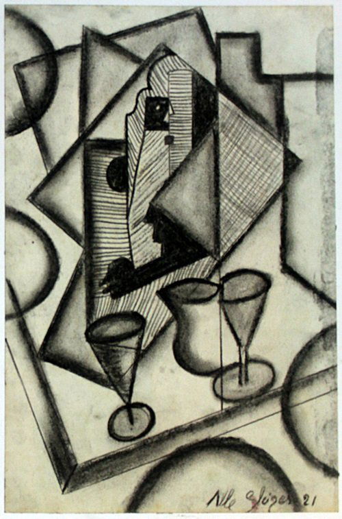 Table with Cups - Drawing on Paper - Albert Gleizes