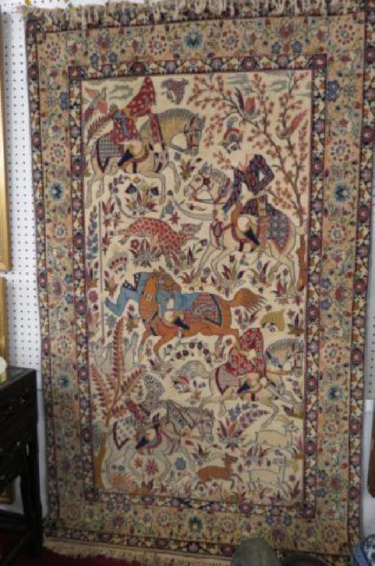 SoldTabriz Silk Handmade Rug,with deer, birds, vase, flowering vine and foliage, 2'11" X 5'3".See Sold Price
