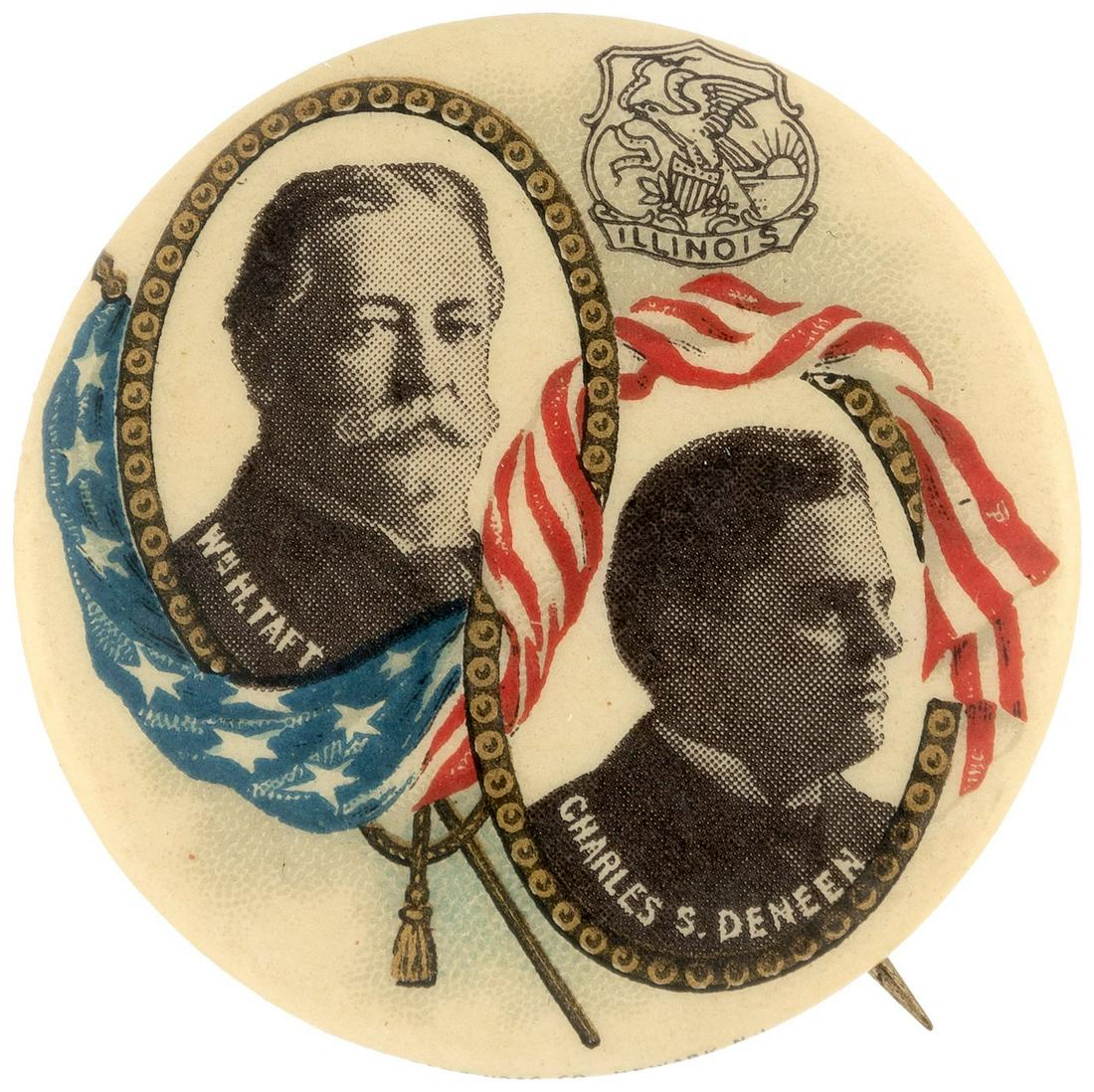 TAFT & DENEEN 1908 ILLINOIS COATTAIL JUGATE BUTTON.