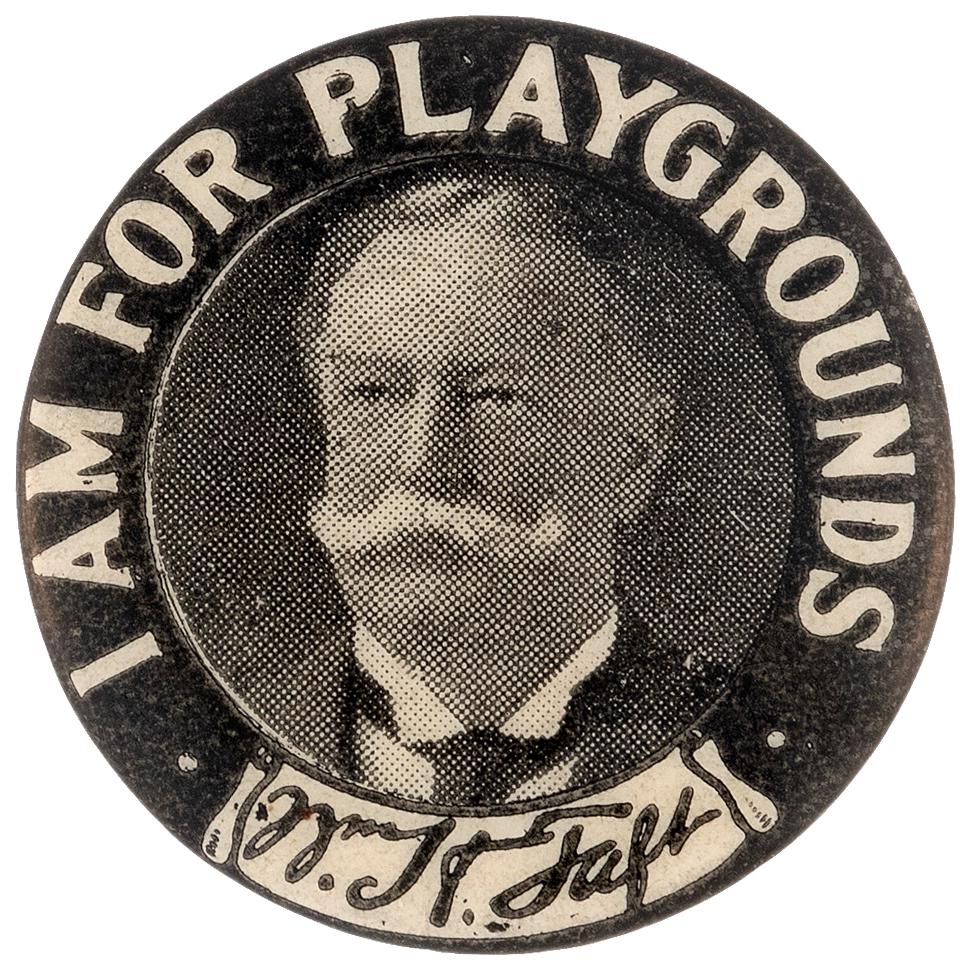 TAFT "I AM FOR PLAYGROUNDS" PORTRAIT BUTTON HAKE #142.