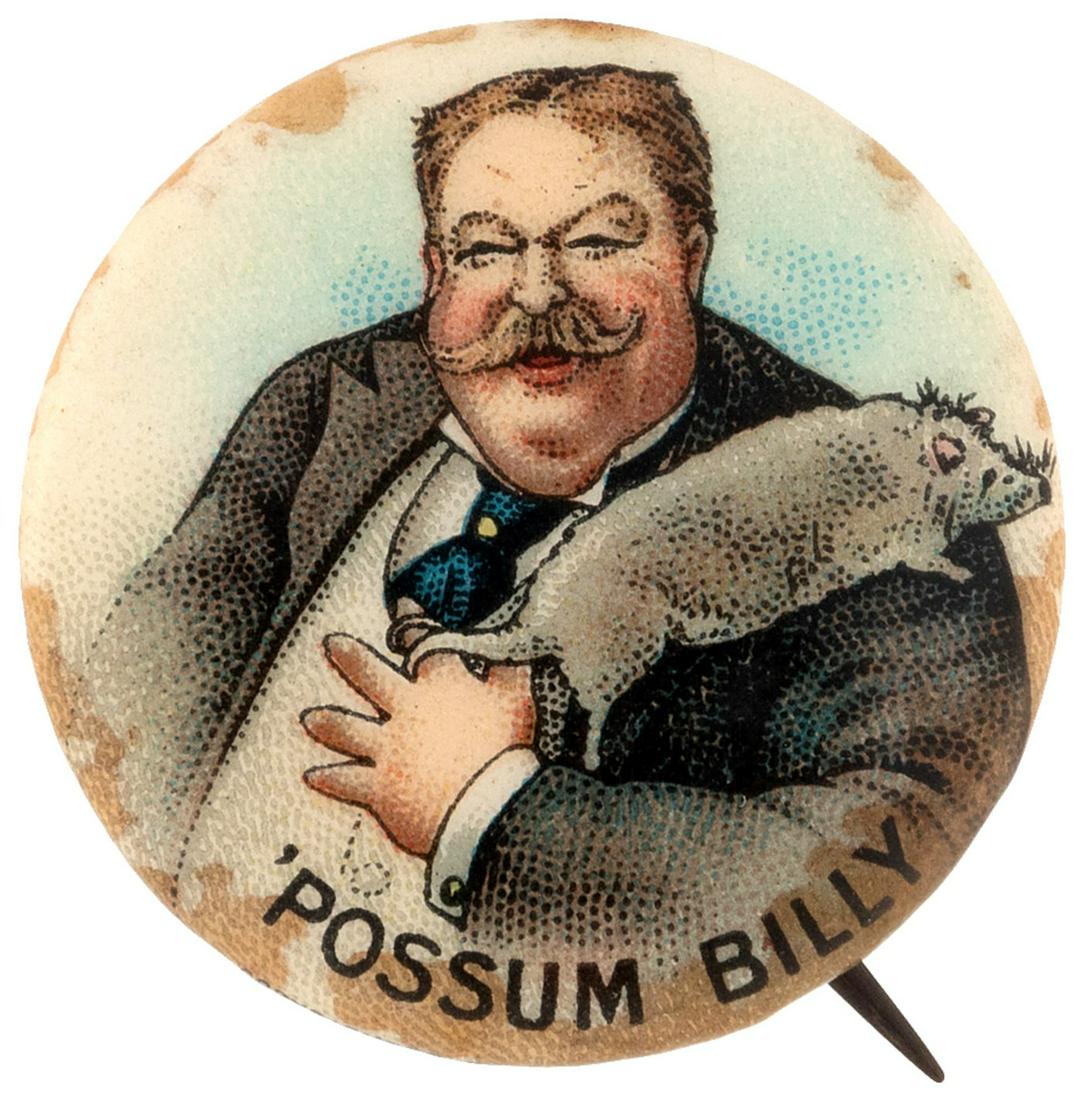 TAFT "POSSUM BILLY" CARTOON BUTTON.