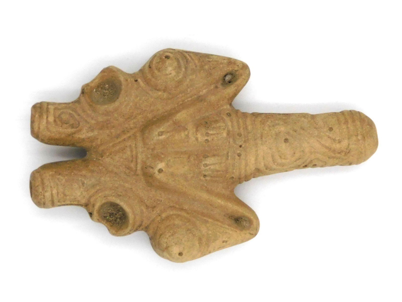 ANCIENT PRE COLUMBIAN CARVED STONE TAINO FIGURAL PIPE