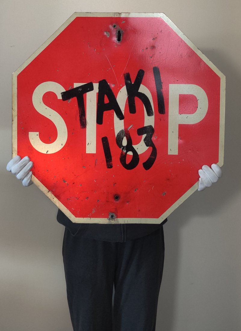 Stop Sign, 25h x 25w x 2d inches, Red & White Octagon, Reflective Front, few scratchesStop Sign, 31h x 31w x 2d inches, Red & White Octagon, Reflective Front, few scratchesBANKSY STYLE SPRAY PAINT GRAFFITI STREET SIGNFeb 28, 2026Vintage Stop Sign with Neon AccentsMar 21, 2026Mass D.P.W. Traffic Division Steel Sign MassachusettsMar 14, 2026Coca-Cola Policeman Sign3 days LeftRight Turn Road Sign, Black Arrow on Yellow Background, 25h x 25w x 2d inchesWOW! 18'H Skelly signMar 28, 2026Santa Cruz Taxi Zone Double-Sided Metal SignMar 14, 2026Stop Thief Police Registered No Hunting Allowed Single Sided Tin Sign In Wood FrameMar 20, 2026Blackstone Cigar Single Sided Porcelain SignMar 21, 2026Mautz Paint 48" DST SignMar 20, 2026General Paint 5' SS Wooden Soldier SignMar 21, 2026Caution Men Working DST Road Highway Sign w/ StandMar 20, 2026Texaco SSP Lubester SignMar 20, 2026POLICE DEPT. "NO PARKING TAXI STAND" PORCELAIN SIGN3 hrs Left