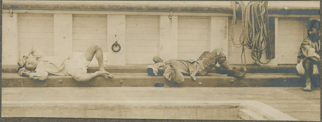 Taking a Break on board a ship, Hawaii. c1910