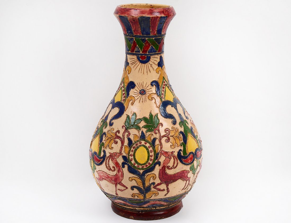TALL CERAMIC POLYCHROME GLAZED VASE