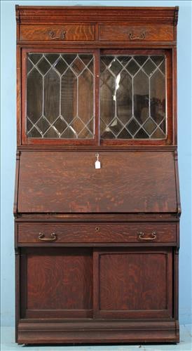 Tall Danner oak 3 stack bookcase with desk