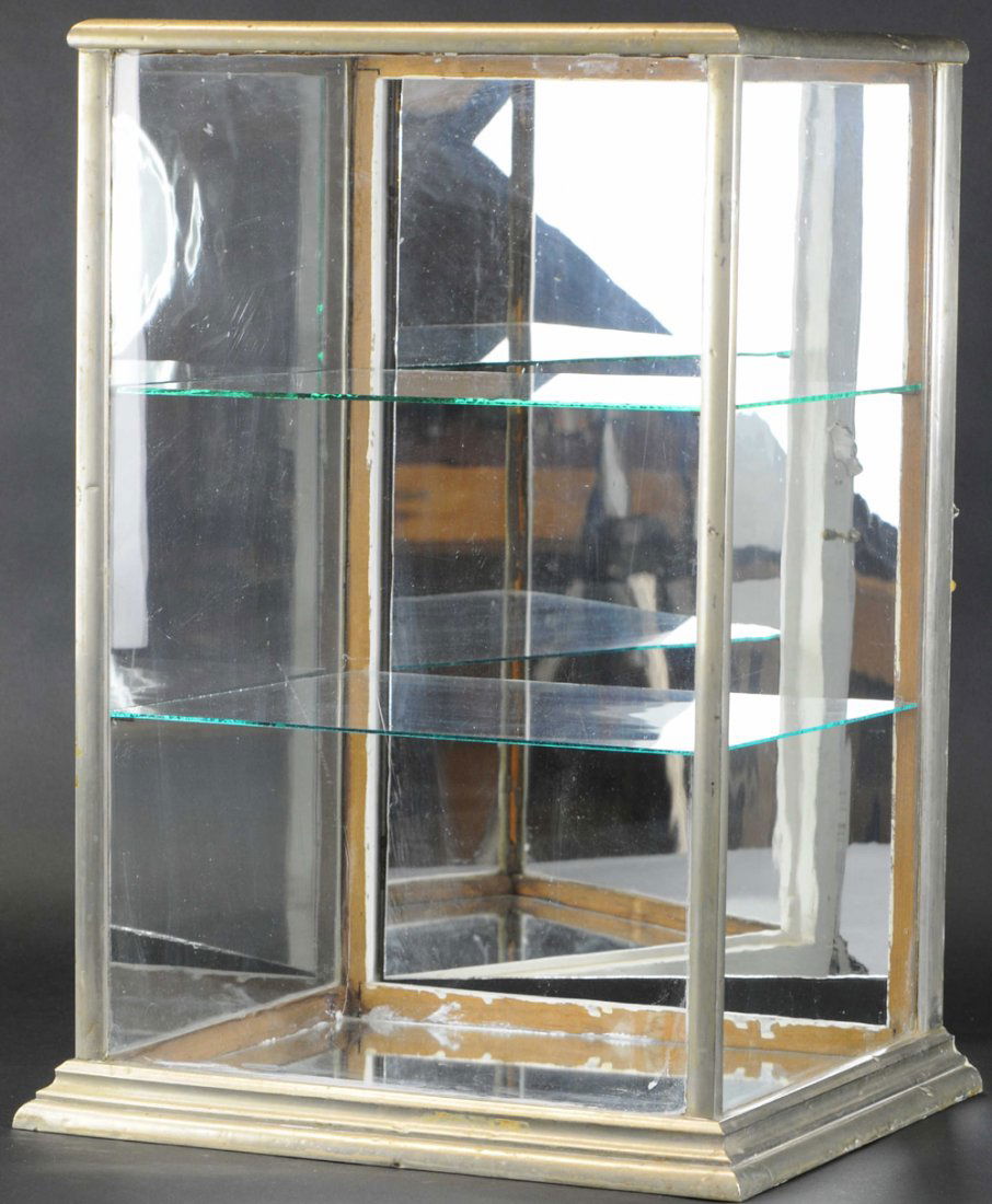 SoldNice Country Store Nickel ShowcaseNice country store nickel showcase in nice condition. 2 removeable shelves, back door with glass. Estate fresh. 19" wide, 30" tall, 21" deep.See Sold Price