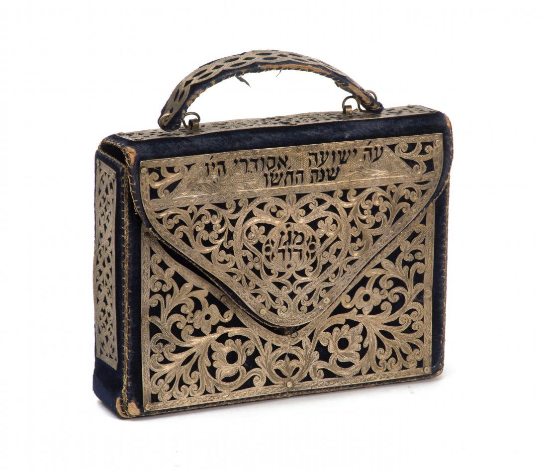 A TURQUOISE INLAID BRONZE AND SILVER 'FISH' TINDER POUCH, CHUCKMUCK, 19TH CENTURYMar 11, 2026AN EMBOSSED SILVER AND COPPER PORTABLE SHRINE DEPICTING THE CINTAMANI JEWEL, GAU, 18TH-19TH CENTURYMar 11, 2026A LARGE GILT-BRONZE AND LEATHER POUCH, CHUCKMUCK, 18TH-19TH CENTURYMar 11, 2026A FINE SILVER AND COPPER GAU WITH THE EIGHT BUDDHIST EMBLEMS AND A TERRACOTTA TSA-TSA, 19TH CENTURYMar 11, 2026Vintage Bezalel Silver-Plated Hanukah MenorahMar 18, 2026A Tang Dynasty silver-gilt inlaid treasure scripture box287 Lots AwayAntique Gilt-tooled Leather Covered Cigar Box Full Straight Razors412 Lots AwayPal Bell Brass Covered Illustrated Full Hebrew Bible, 1950s.Mar 10, 2026Judaica 14K Gold & Enamel Torah PendantMar 18, 2026Edwardian Leather Brass Suitcase by Army & Navy CSL London 1910Mar 10, 2026A Qing Dynasty copper-gilt inlaid treasure character story beam boxMar 28, 2026JEWISH SILVER TORAH SHIELD w. CHAIN, 1868Mar 21, 2026Antique 19th C. India Kerala Style Nettur Petti Dowry Wedding BoxMar 21, 2026A Gold and Diamond and Jewel-Mounted Cigarette CaseMar 11, 2026A HIDE COVERED AND BRASS MOUNTED TRUNK, OF RECENT MANUFACTURETramp Prison Art Wooden Matchstick Jewelry BoxMar 17, 2026