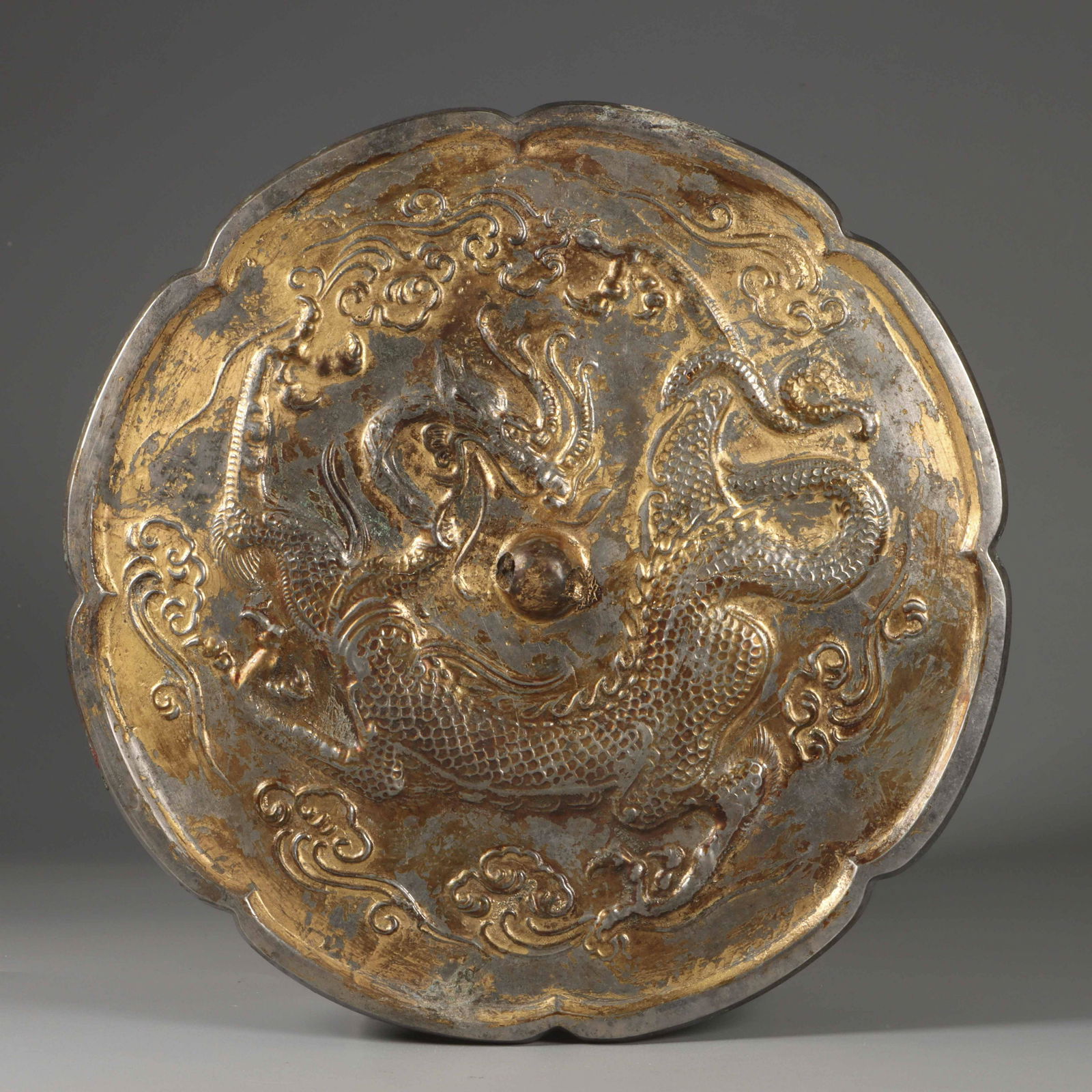 Tang Dynasty Gilt Dragon Pattern Bronze Mirror