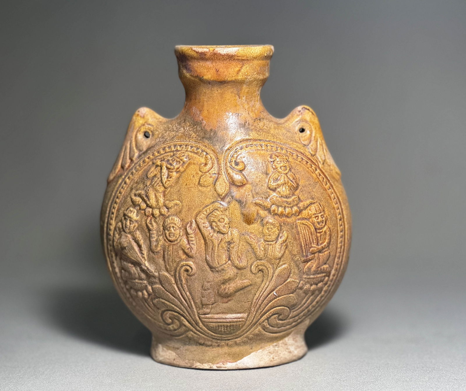 Tang Dynasty - Yellow Glazed Flat Pot