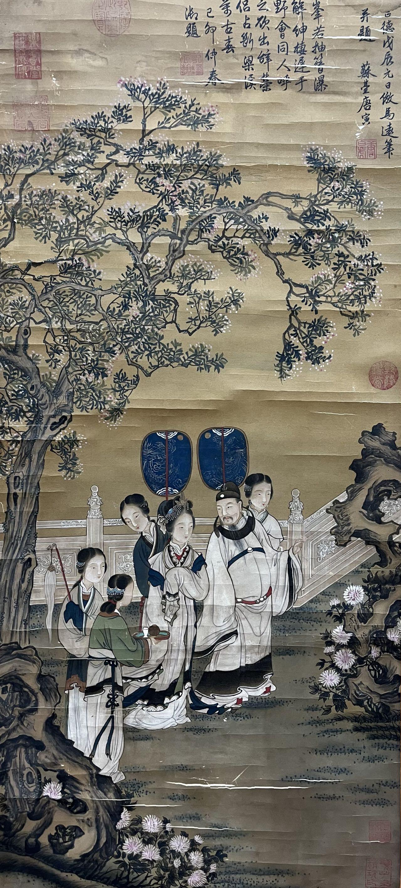 Tang Yin's exquisite silk painting, "Enjoying Spring at Willow Bridge," hanging scroll.FCL4.2(3)$7008 hrs Left