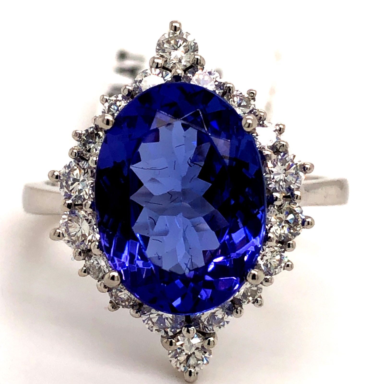 14K White Gold 6.78ct Tanzanite and 1.43ct Diamond Ring
