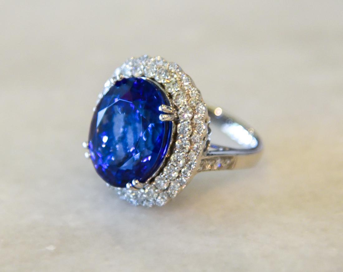 Tanzanite & Diamond Ring Appraised Value: $26,03018K white gold ring with 1.36 ct of diamonds CLARITY VS-1 to SI-1 COLOR G-I and 11.35 ct natural tanzanite center stone K14E723See Sold Price