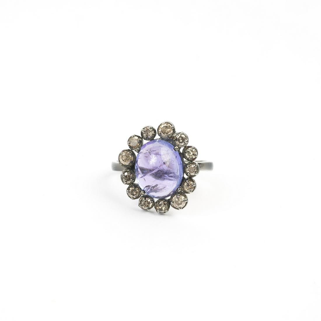 Tanzanite, Diamond, Blackened Sterling Silver Ring.
