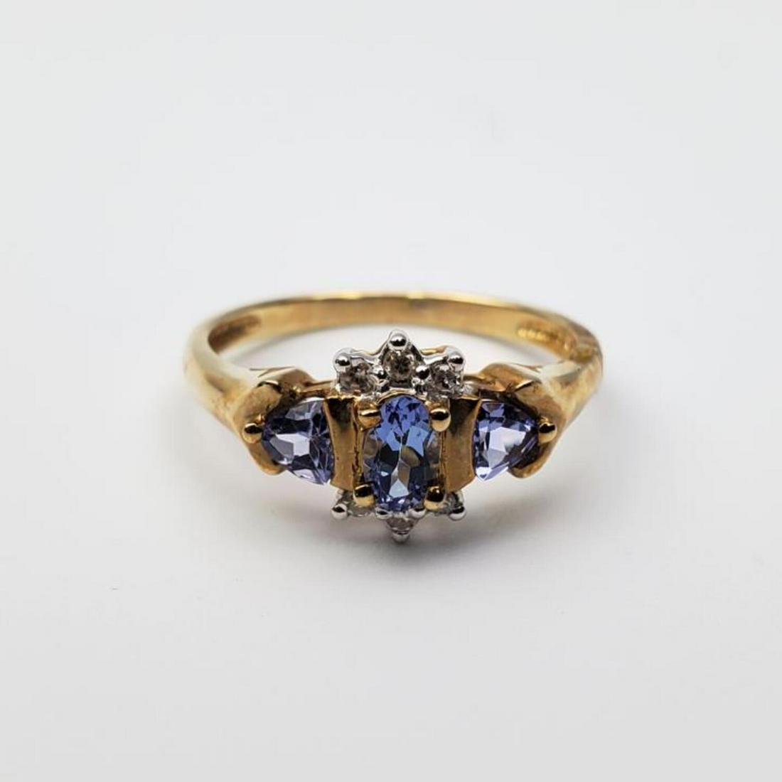 14K Gold Ring with 3 Tanzanites and Diamonds