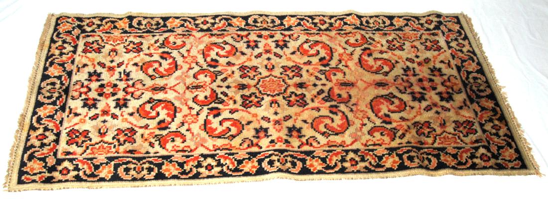APPROX 16' 2" x 8' 1" HANDMADE WOOL RUG.