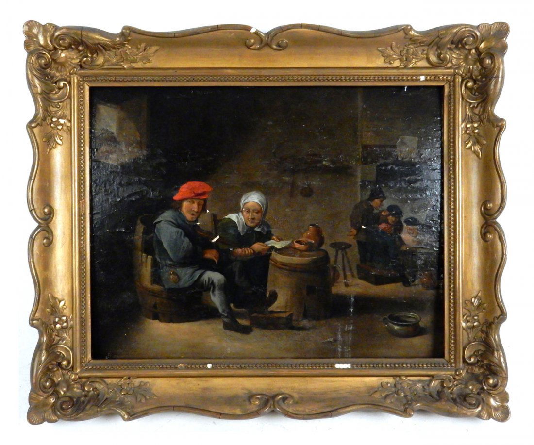 TAVERN SCENE WITH GAMERS Medium: oil painting on canvas Title: Tavern Scene with Gamers4 hrs LeftOriginal oil painting on canvas with illegible signature4 hrs LeftOriginal oil painting on canvas with illegible signatureFeb 28, 2026Manner of David Teniers II - Untitled (Tavern Scene)5 days LeftLouis van der Pol (Dutch, 1896-1982) Street Scene, Oil on Panel Painting5 days LeftAntique early 20C European oil paintingMay 03, 2026Early 19th c. Country Genre Scene Oil on CanvasAntique early 20C European oil paintingApr 05, 2026Fine Dutch Old Master PaintingMar 08, 2026PR ANTIQUE ENGLISH TAVERN PORTRAITSMar 07, 2026French School "The Proposal" Oil on Panel, 19th C.Apr 07, 2026NICOLAS VAN DE VELDE (The Netherlands, 18th Century), Dutch shipping channel., Oil on panel, 6.5" x5 days LeftAntique Dutch Old Master paintingMar 08, 2026Russian School (19th Century), "Court Jester and Peasants Sharing a Meal," Sight- H.- 12 1/4 in.,6 days LeftHeyman Dullaert (Dutch, 1636-1684), Oil Painting on Board19th Century European Interior Scene Oil on Canvas1 day Left