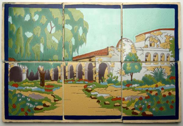 TAYLOR TILERY Six-tile panel, "San Juan Capistrano