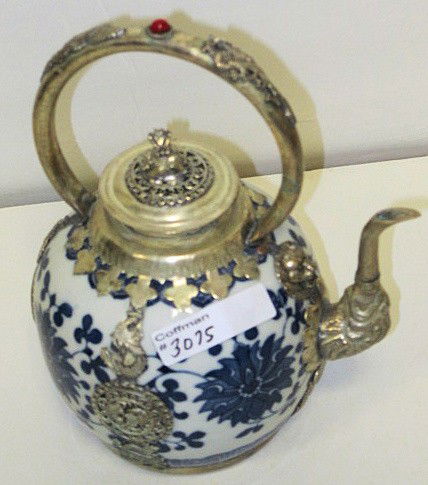 Tea pot - Oriental markings - silver trim