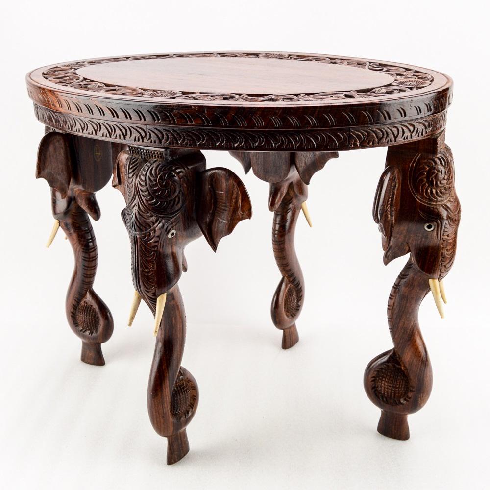 Teak and Bone Hand Carved Elephant Table