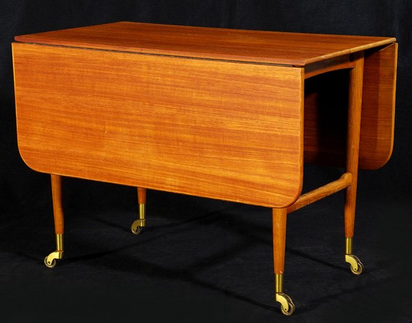 SoldFalster - Teak Dining TableDescription - Flaster teak dining table with 2 butterfly leaves. Dimensions - 29.5" x 61.5" x 40" leaves- 20.5"See Sold Price