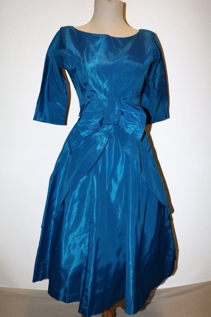 1950's Teal Blue Taffeta Fit & Flare Pouf Dress with