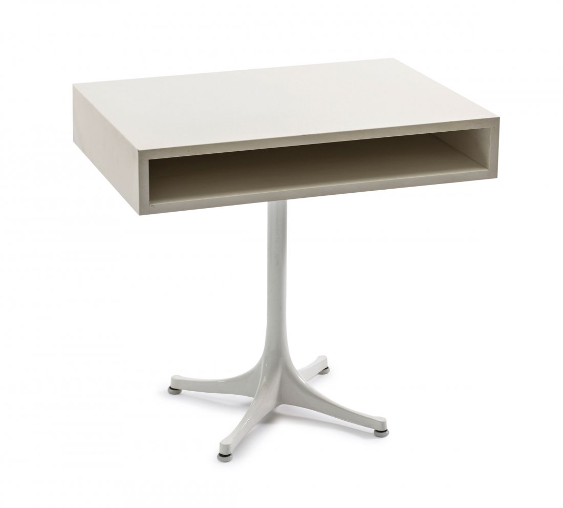 SoldEliot Noyes Telephone TableRolling metal telephone table with laminate top by Eliot Noyes, ca. 1956.See Sold Price