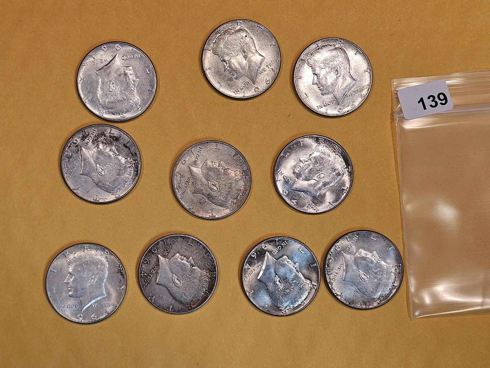 Ten 1964 silver Kennedy half Dollars