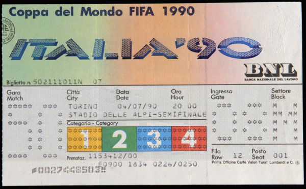 Ten 1990 World Cup tickets, including three Englan