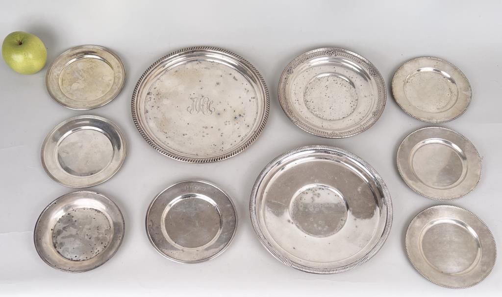 Ten Assorted Round Sterling Plates
