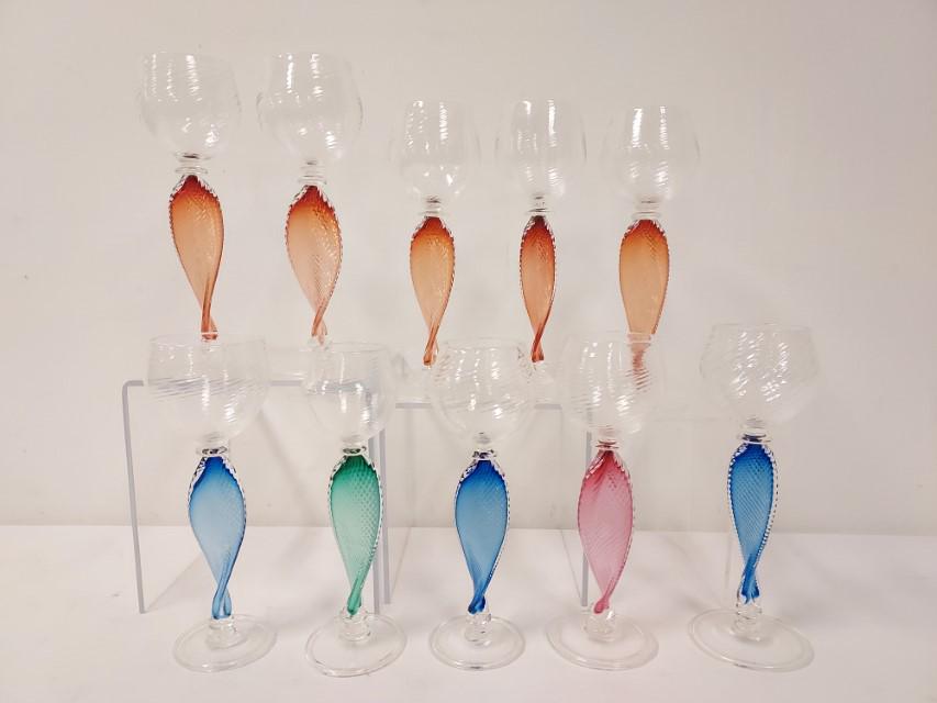 TEN DANIEL HERTZSON SWIRLED COLORED GLASS STEMS