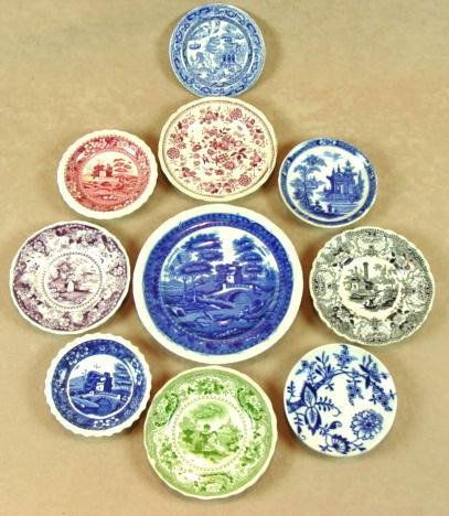 TEN ENGLISH TRANSFER WARE CUP PLATES