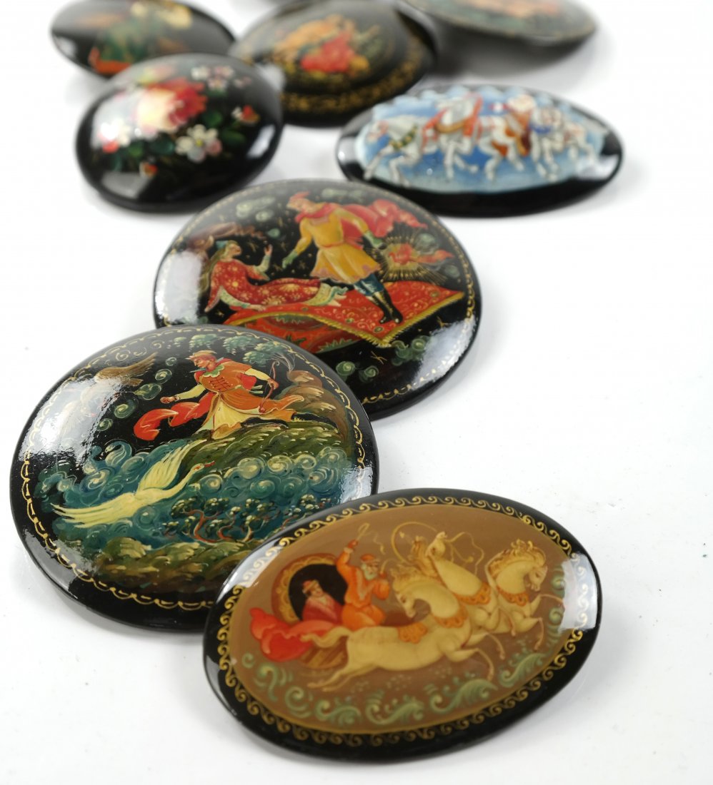 Ten Russian Lacquer Pins and Barrette
