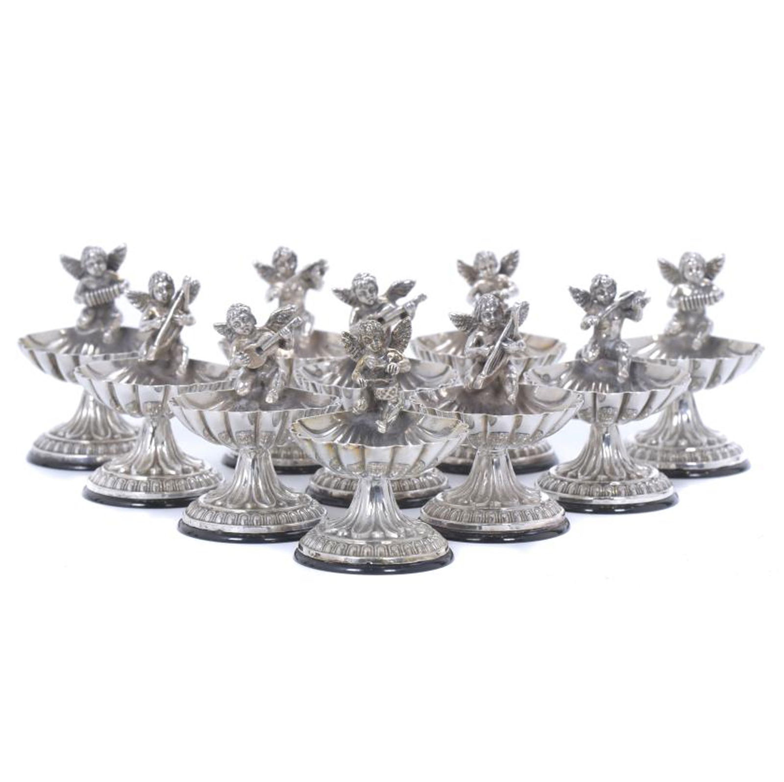 TEN SMALL SALT CELLARS, REGENCY STYLE, 20TH CENTURY.