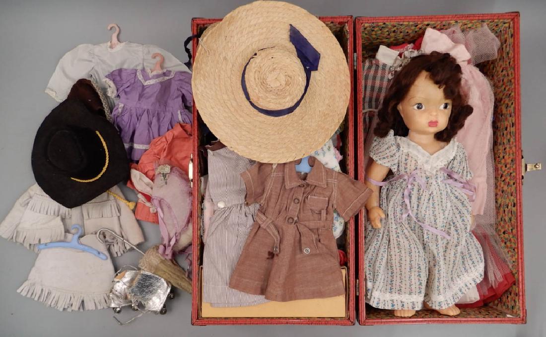 Terri Lee doll with clothes in trunk