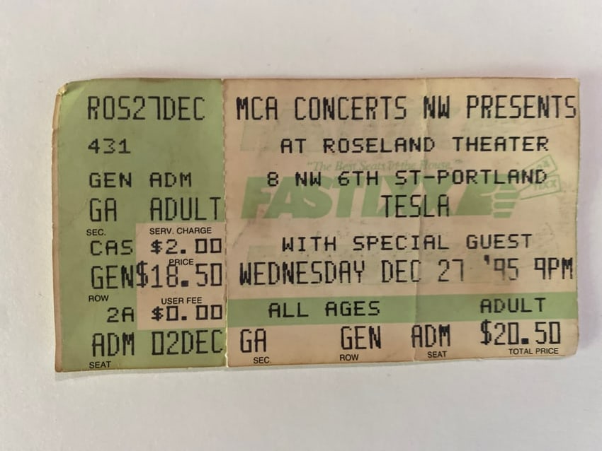 Tesla 1995 Concert Ticket