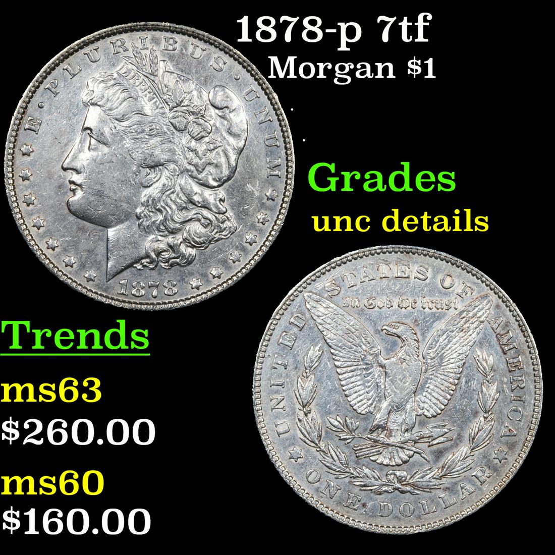 1878-p 7tf Morgan Dollar $1 Grades ms62
