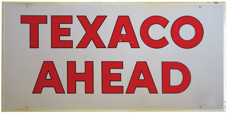 Cast Iron Texaco Restroom Sign Plaque2 days LeftTexaco Ahead 10' Reflective SST Service Station Billboard SignMar 21, 202695" Texaco Ahead Single Sided Advertising SignMar 21, 2026Texaco Golden Motor Oil Sign7 days LeftLarge Texaco Gasoline DSP Tomahawk ID SignMar 21, 2026Vintage Texaco Service Center Sign7 days LeftTexaco Golden Motor Oil Sign7 days LeftTexaco Crankcase Service Sign7 days LeftTexaco Single-Sided Porcelain Round SignMar 14, 2026Texaco Single-Sided Porcelain Round SignMar 14, 2026Texaco SSP Lubester SignMar 20, 20261930s Texaco No Smoking The Texas Company SSP SignMar 14, 20266FT Texaco Double Sided Porcelain Dealer SignMar 21, 2026Texaco Marfak Lubricacion Single Sided Tin SignMar 21, 2026Texaco SSP Lubester SignMar 21, 2026Esso Motor Oil Unexcelled 6' Single Sided Tin SignMar 20, 2026