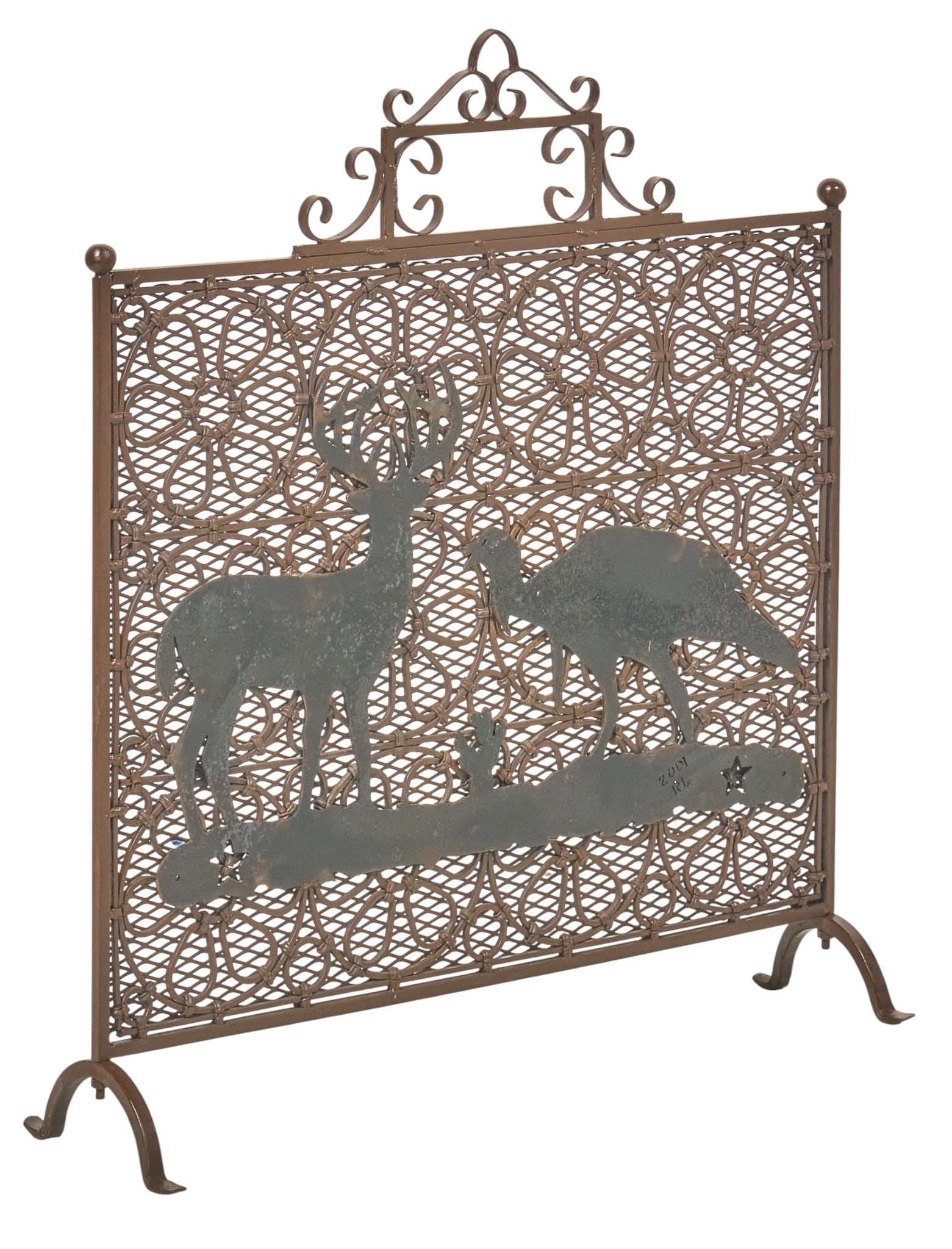 Jan Barboglio Bronze Finish Wrought Iron Fireplace Andirons with Flower DesignMynt Auctions4.4(835)$1005 days Left