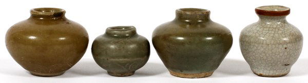THAI CELADON GLAZED VASES, ANTIQUE - FOUR