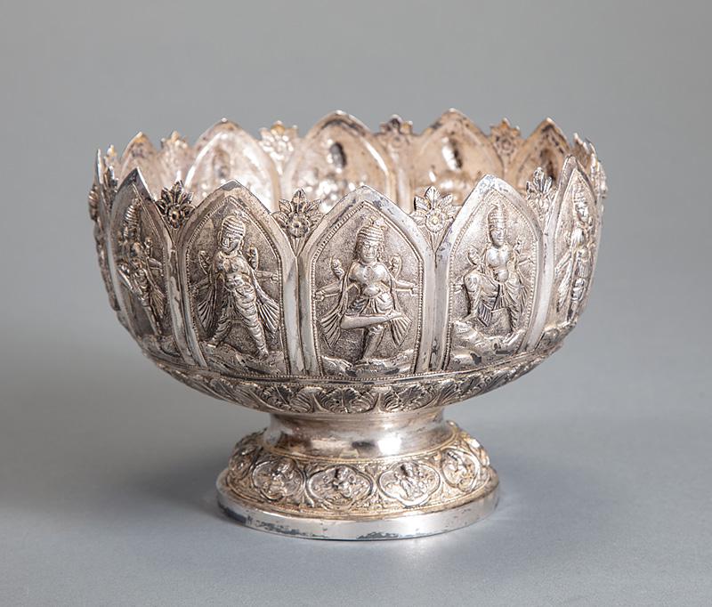 Thai or Burmese Repousse Silver Bowl